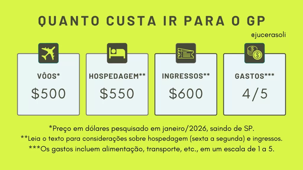 Lembrando que este não é o gasto mínimo para ver o GP. E, sim, o melhor custo-benefício:
