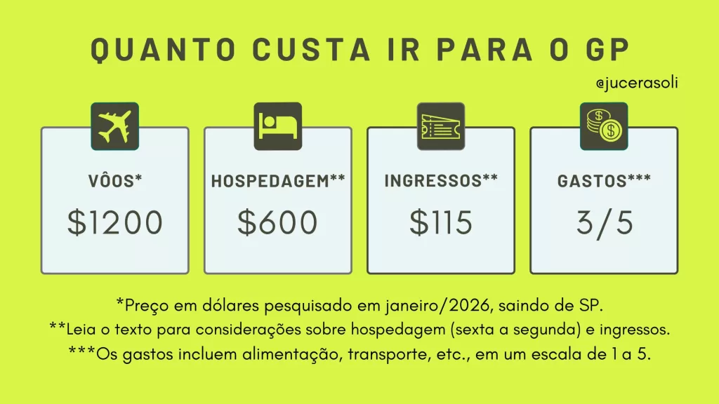 Lembrando que este não é o gasto mínimo para ver o GP. E, sim, o melhor custo-benefício: