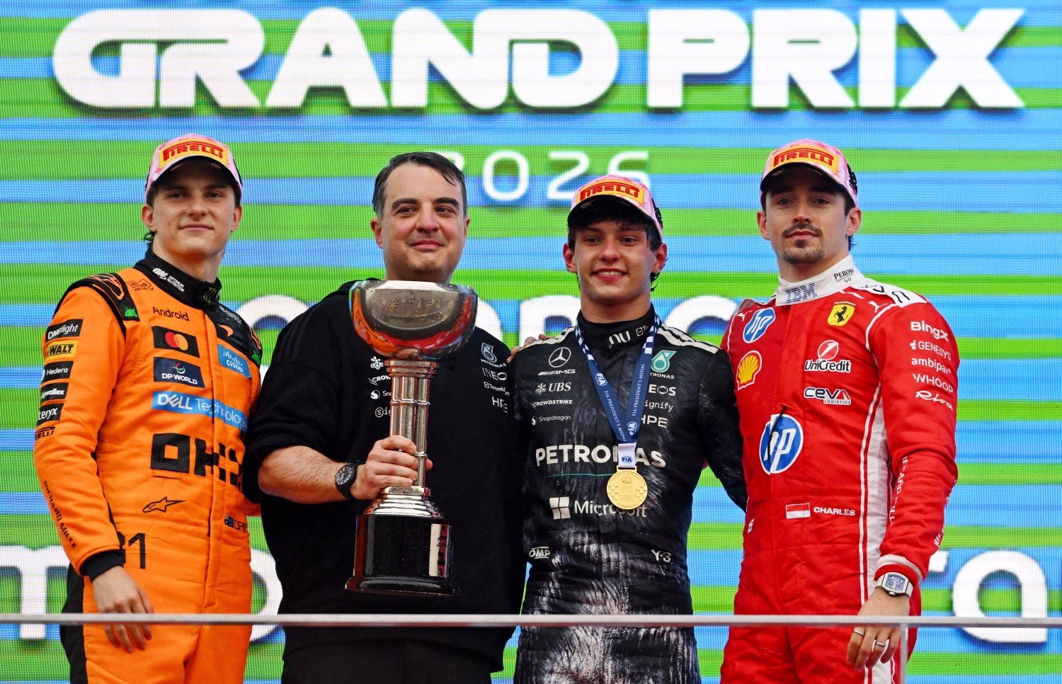 Foi o primeiro pódio de Hamilton pela Ferrari e quis o destino que seu ex-engenheiro, Bono, estivesse ali também para receber o troféu para a Mercedes e celebrar a vitória de seu novo piloto, Antonelli.